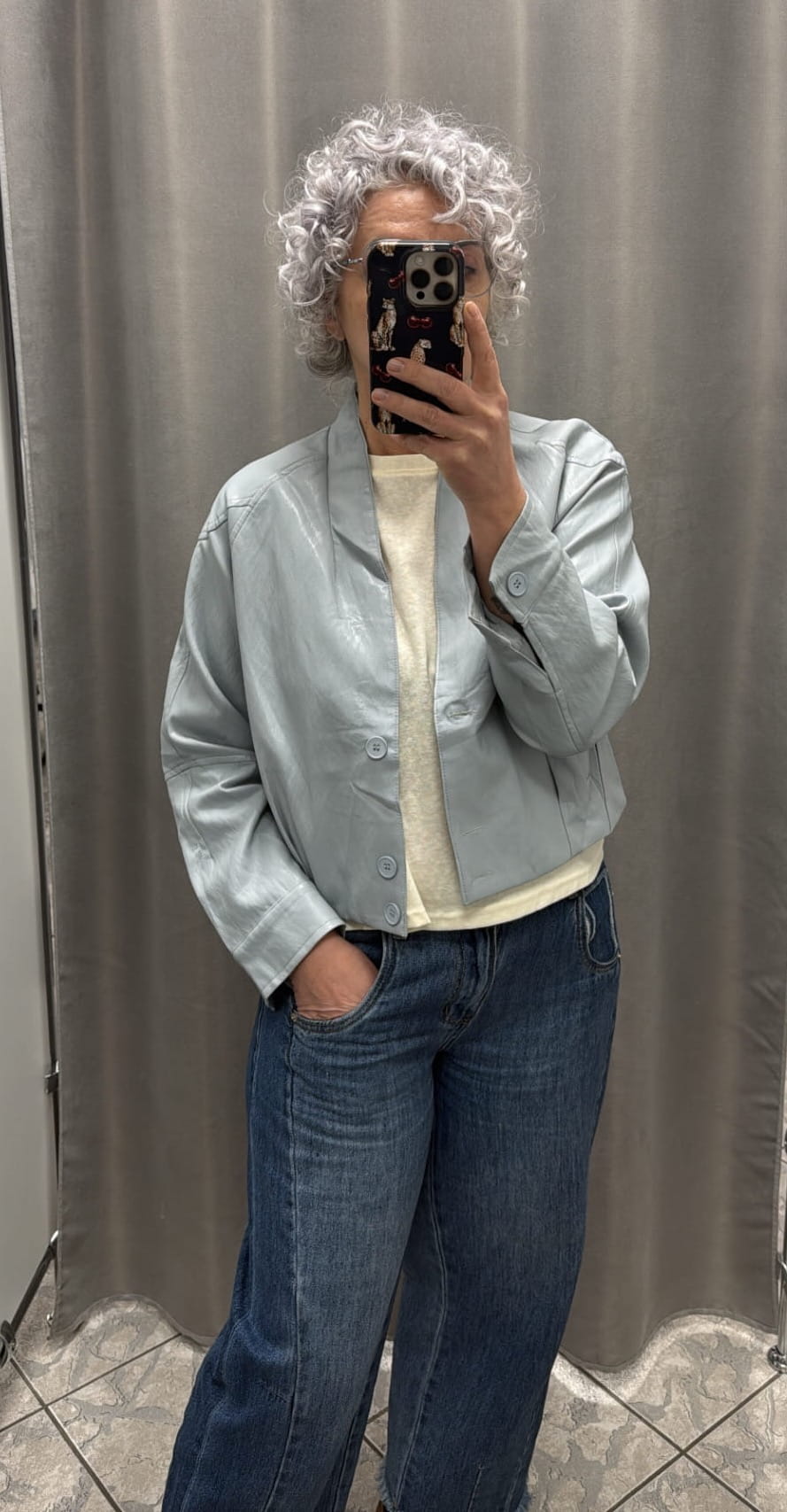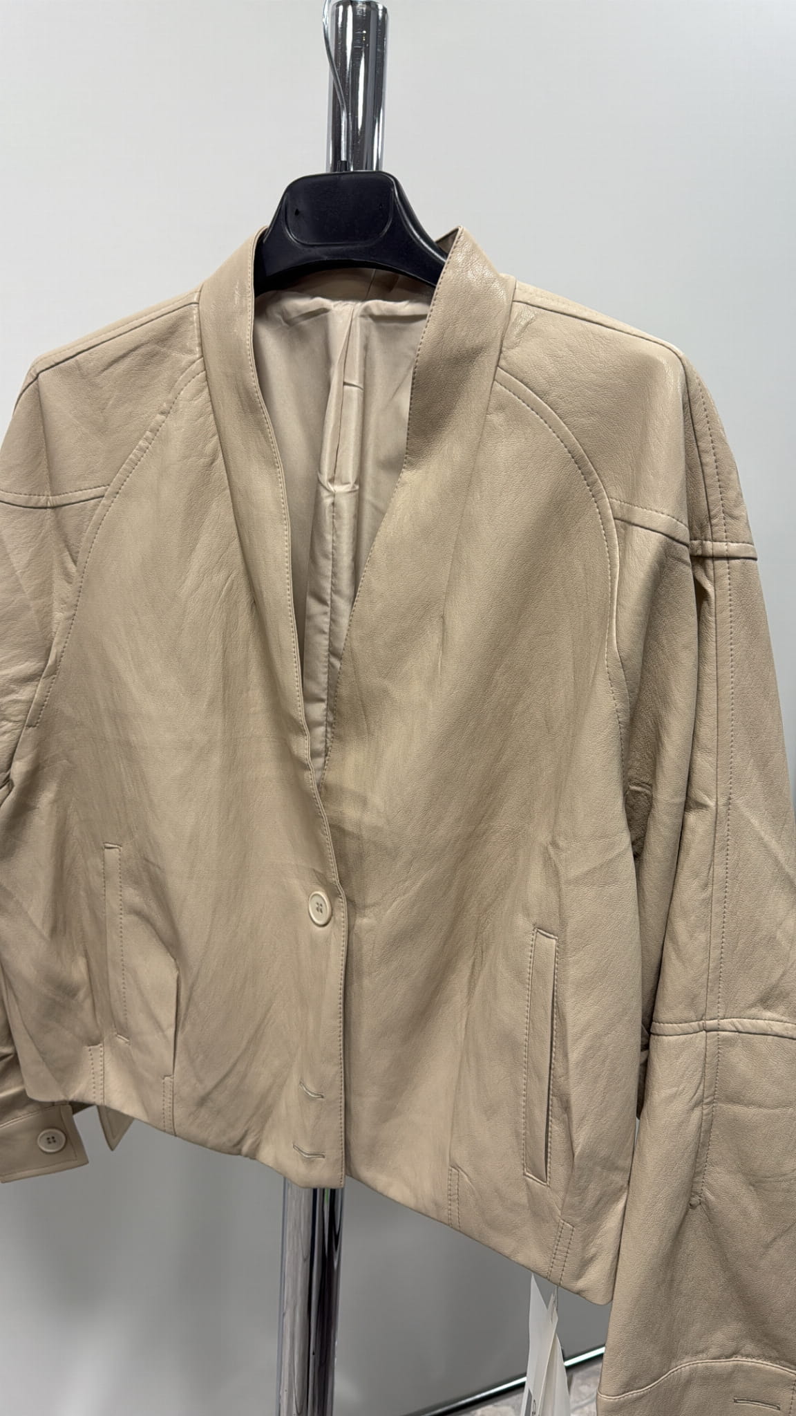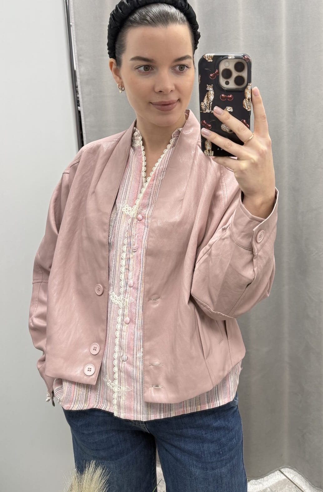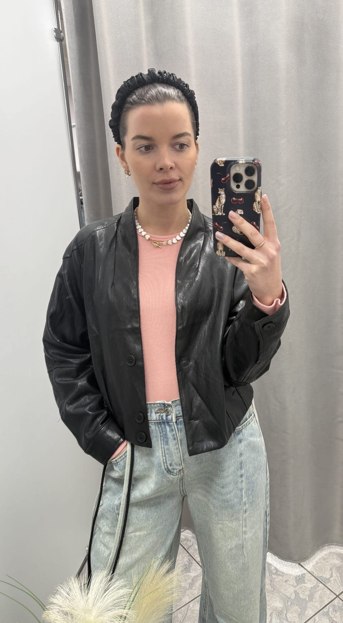 Stylowa kurtka żakietowa z wyjątkowo miękkiej imitacji skóry to doskonałe połączenie elegancji i codziennej wygody. Krótszy fason pięknie podkreśla sylwetkę i świetnie komponuje się zarówno ze spodniami z wysokim stanem, jak i sukienkami czy spódnicami.