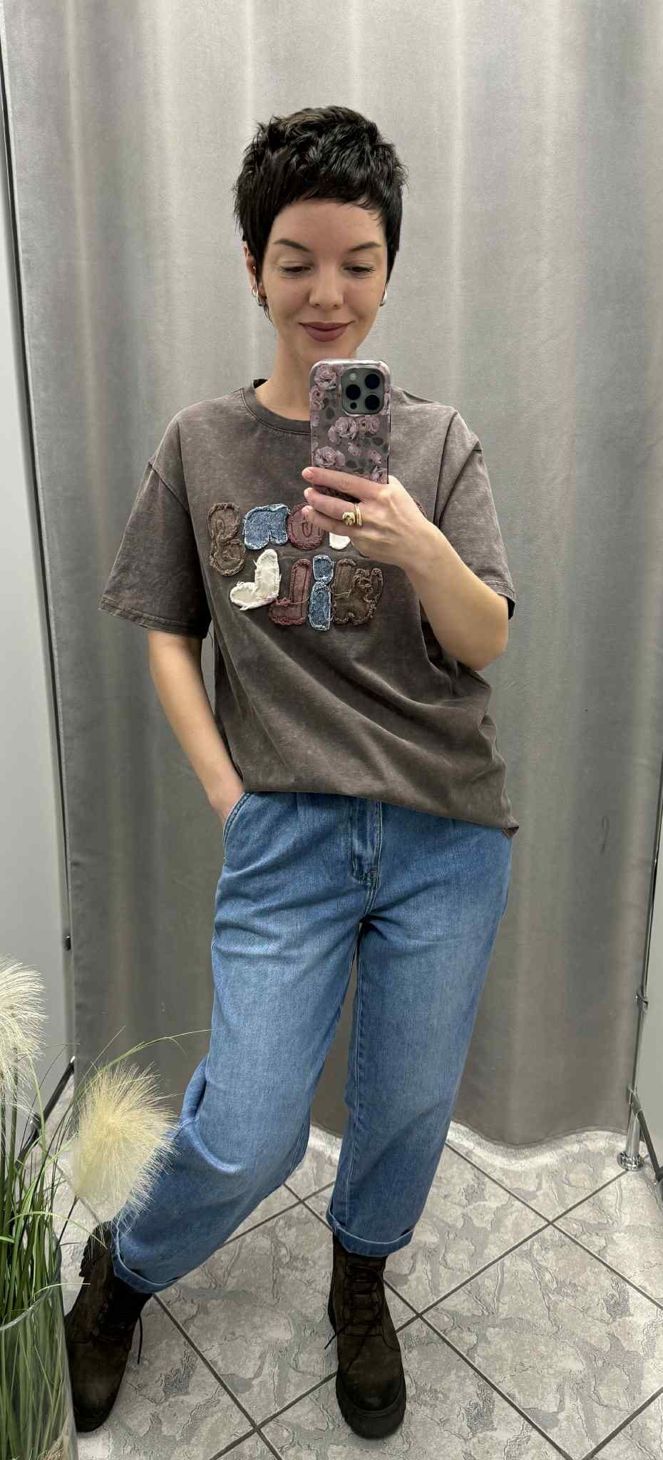 Uniwersalny rozmiar oraz swobodny fason sprawiają, że T-shirt świetnie układa się na różnych sylwetkach. Doskonale komponuje się z jeansami, spodniami materiałowymi czy spódnicą, tworząc bazę do codziennych i miejskich zestawów.