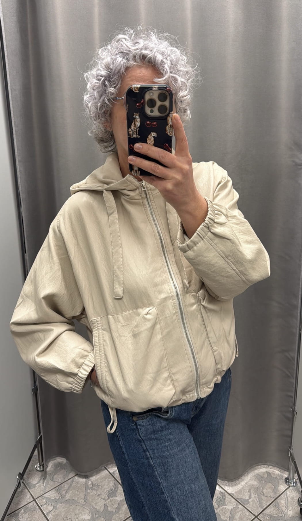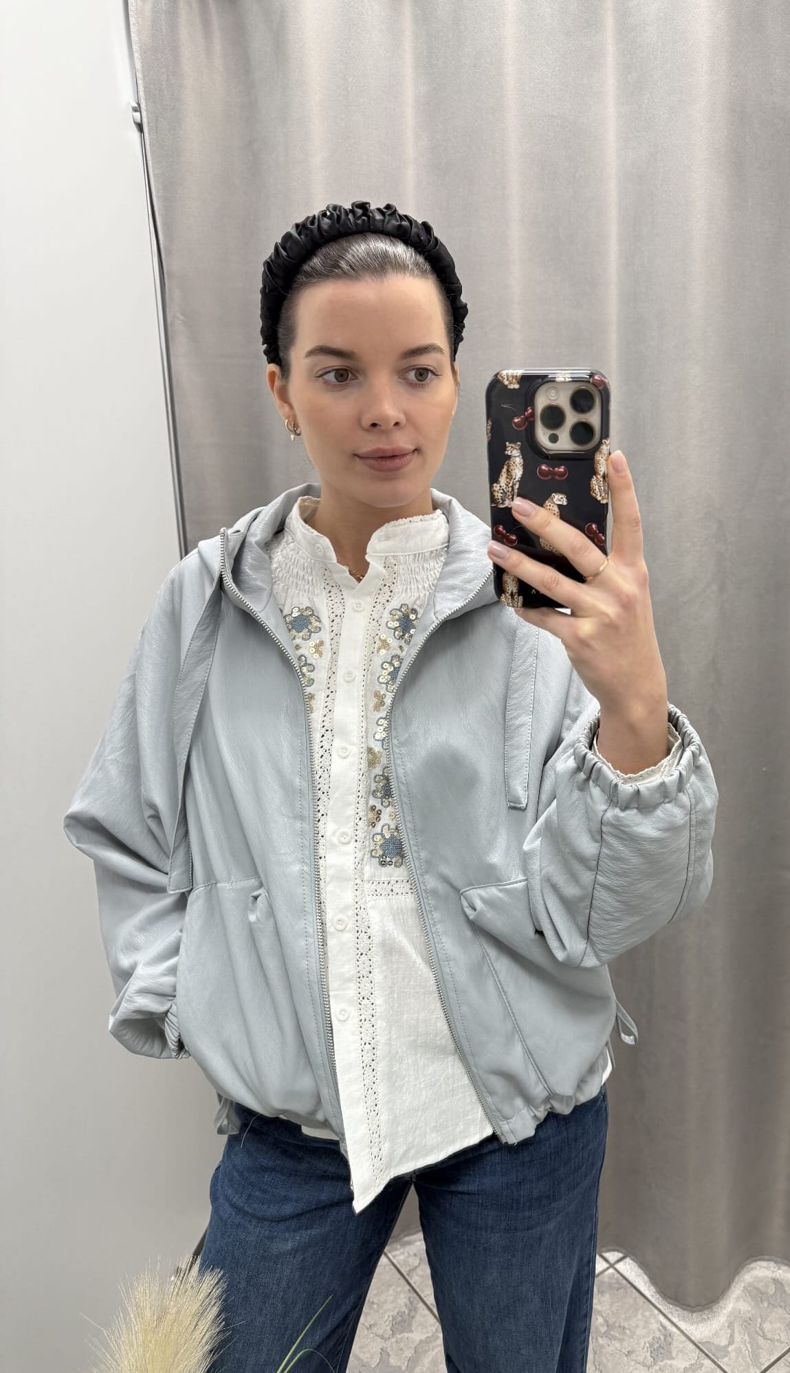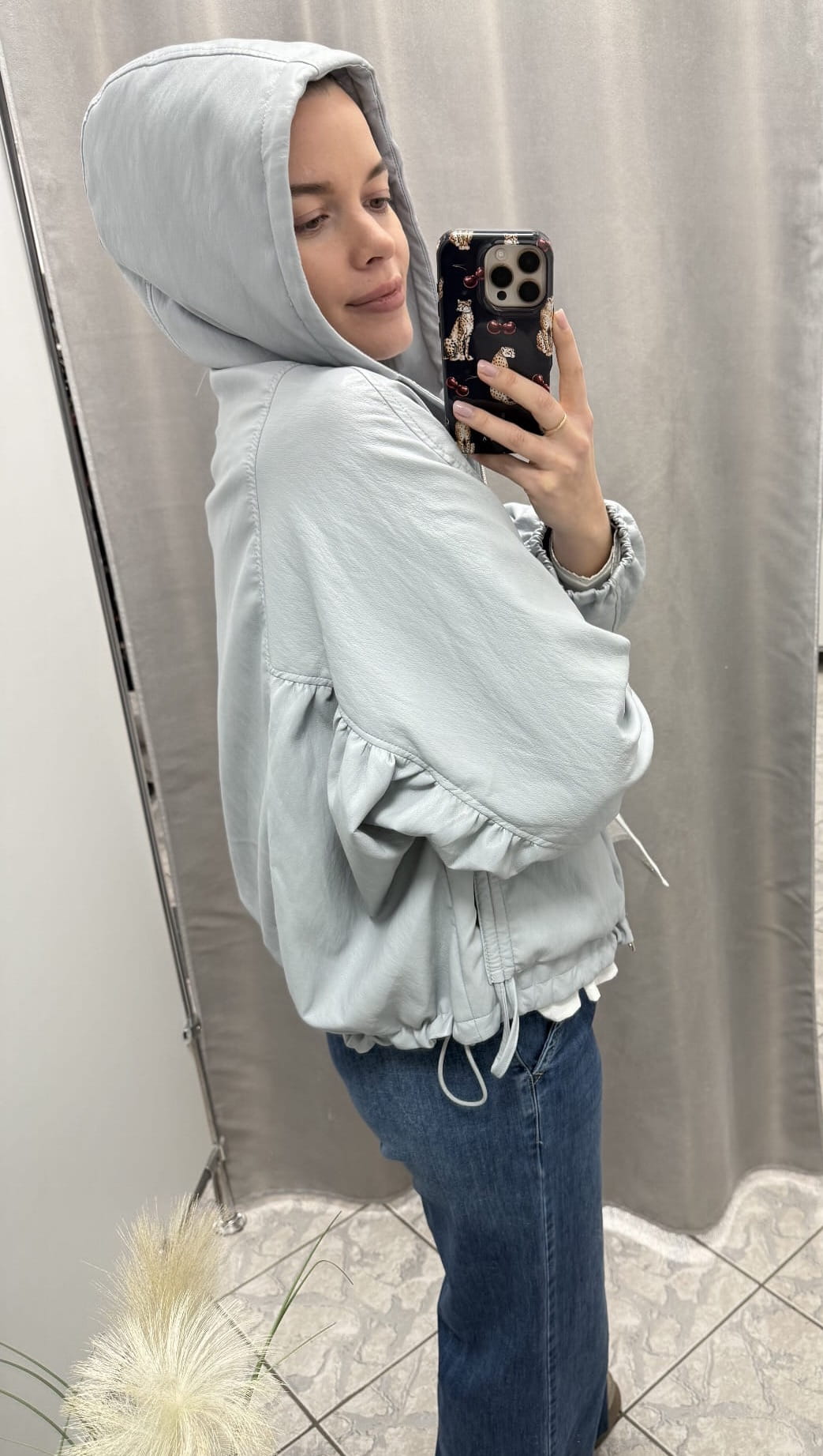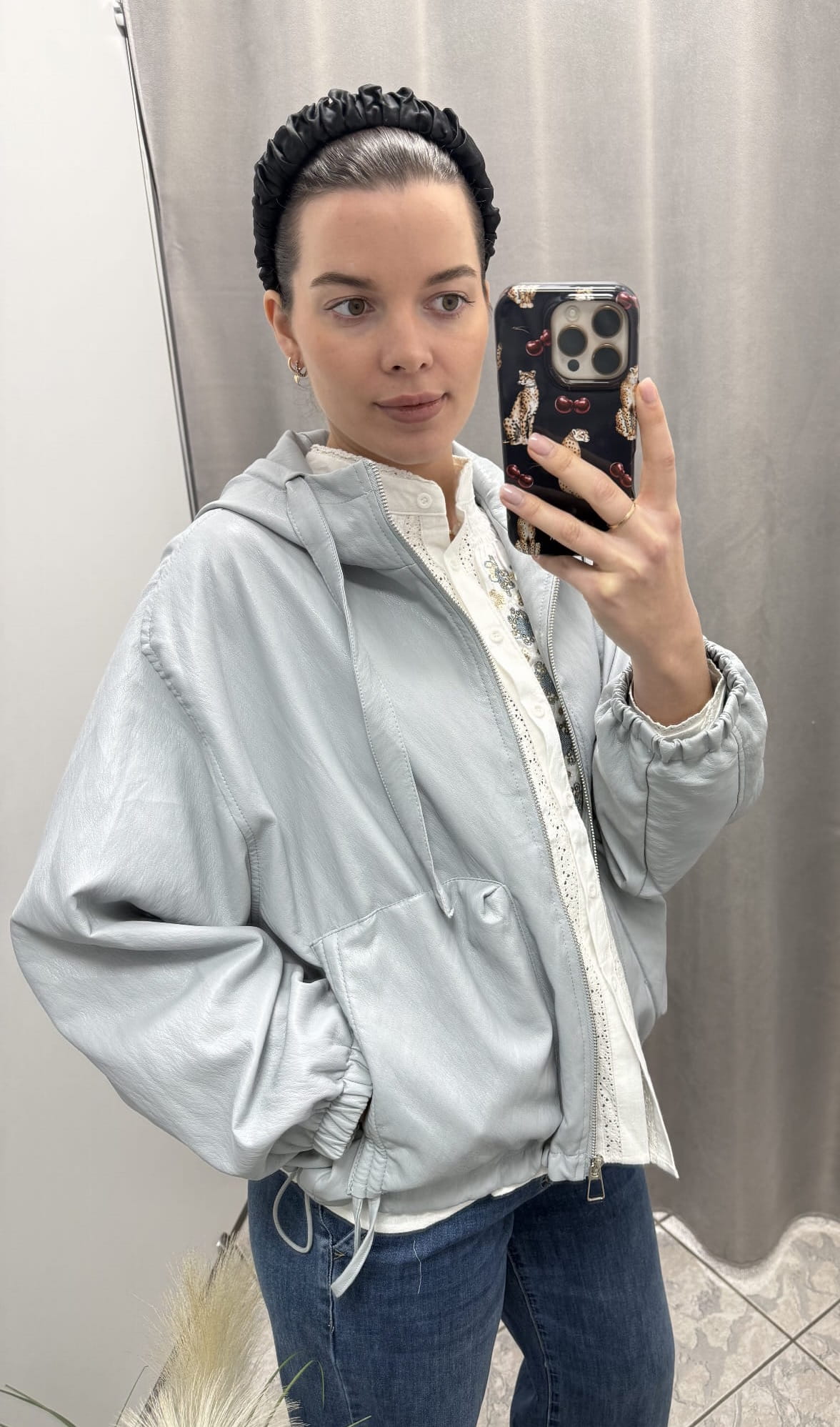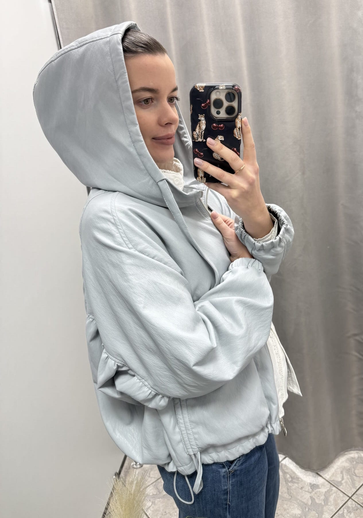 Miękka kurtka oversize wykonana z delikatnej skajki imitującej skórę. Prosty fason z kapturem, kieszeniami i regulacją dołu za pomocą gumki ze stoperem. Idealna na wiosnę i chłodniejsze dni. Dostępna w trzech modnych kolorach.