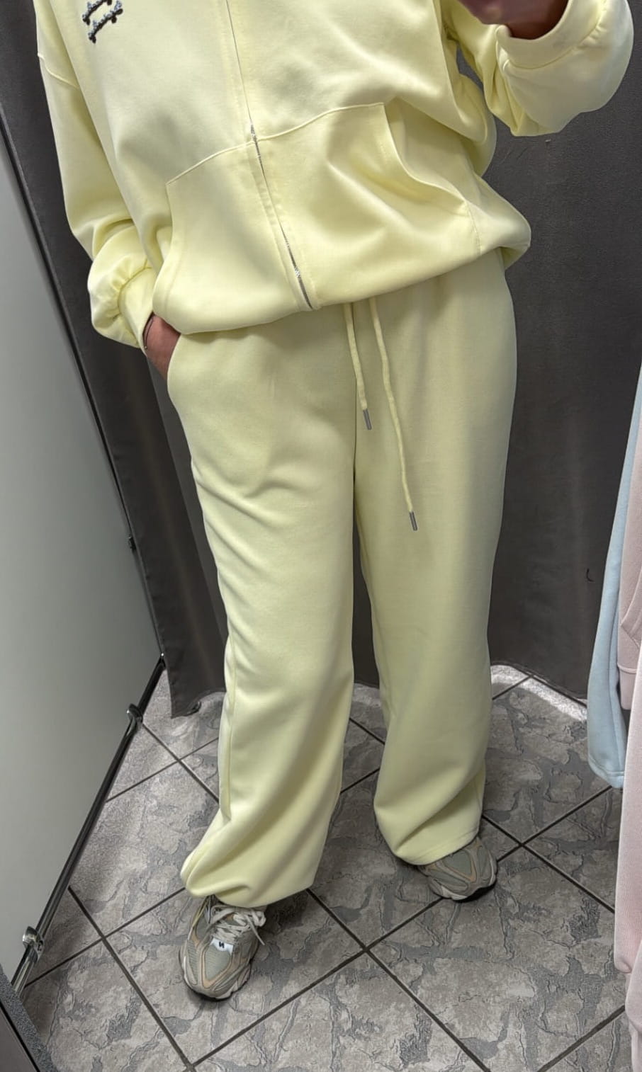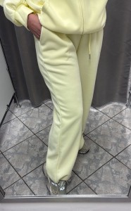Model posiada elastyczną gumkę w pasie, która zapewnia komfort i swobodę dopasowania – obwód w pasie do 100 cm. Długie, proste nogawki nadają spodniom uniwersalny charakter, a regulowane wykończenie dołu nogawek gumką ze stoperem pozwala na zmianę fasonu – od luźnego po bardziej sportowy, w zależności od stylizacji.